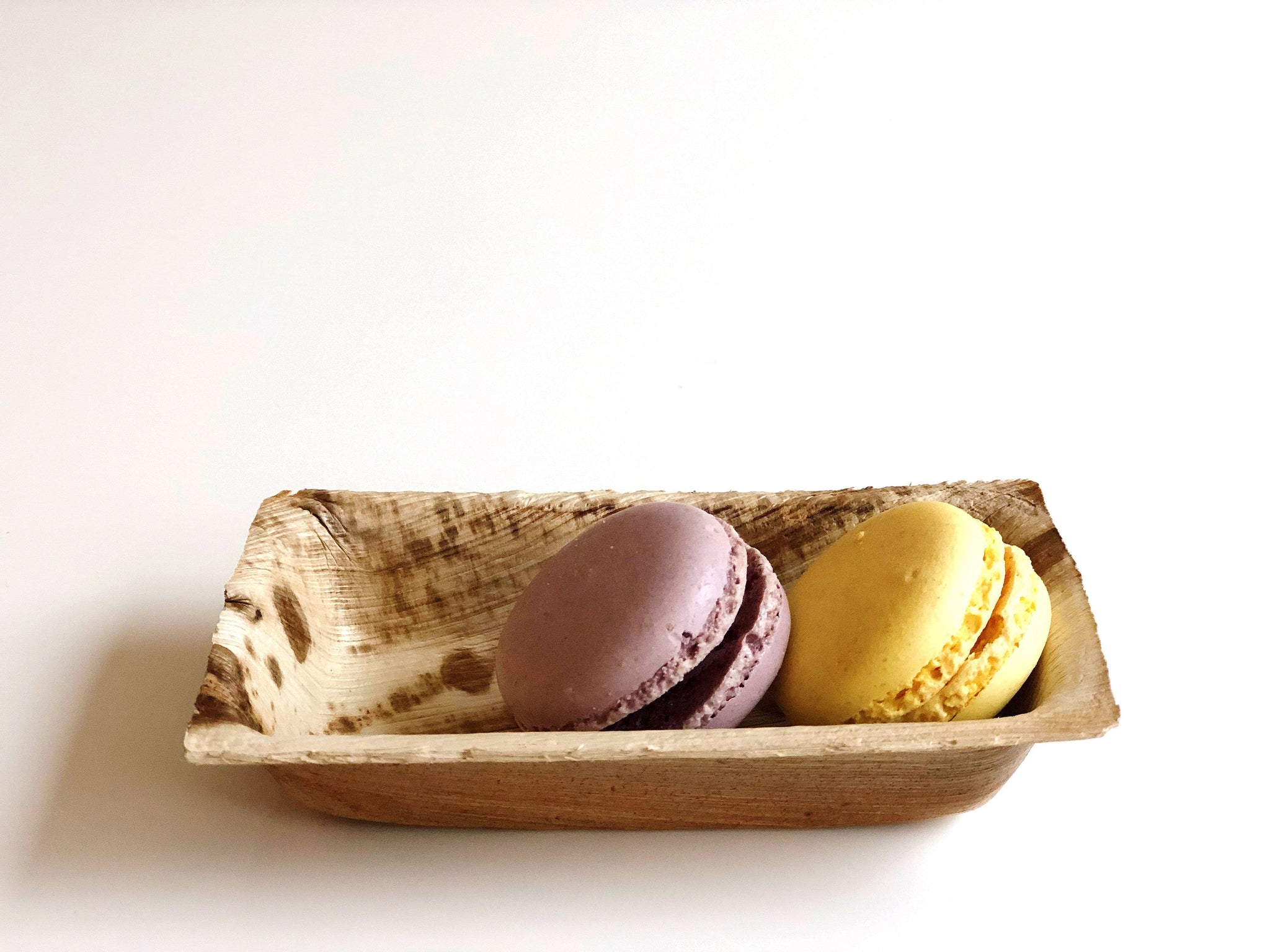 Our 7x12cm palm leaf bowl is our second smallest palm leaf dish. It has the perfect shape and size to be used either as an amuse bouche, canape dish, mini oven dish or as a dip bowl. All palm leaf plates and bowls are very sturdy and are suitable for all types of hot, cold or liquidy food. They can even go in the oven for 45 minutes at 180 degrees.